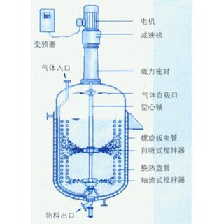 間歇式加氫反應釜攪拌形式一般為三層組合式攪拌,包括槳式攪拌,自吸式攪拌和圓盤渦輪分散攪拌,也可根據用戶的要求任意選配。我司自吸式攪拌槳增加一組兜風器,可以使氣體更順利的進入攪拌槳空心軸,并與液相氣體充分混合。